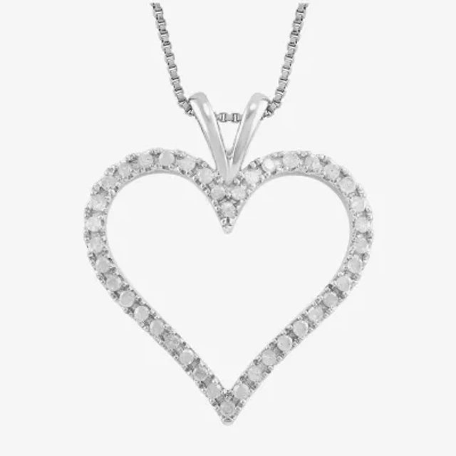 Womens 1/ CT. T.W. Lab Grown White Diamond Sterling Silver Heart 18 Inch Pendant Necklace