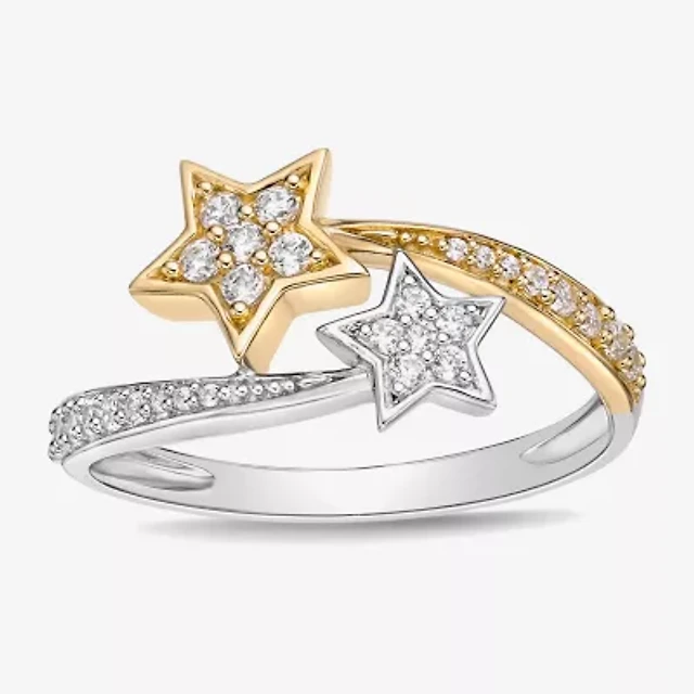 Womens 1/4 CT. T.W. Natural White Diamond 10K Two Tone Gold Star Cocktail Ring