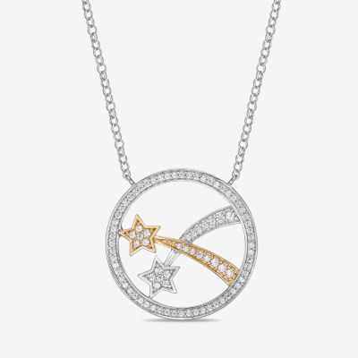 Womens 1/ CT. T.W. Natural White Diamond 10K Two Tone Gold Star 18 Inch Pendant Necklace