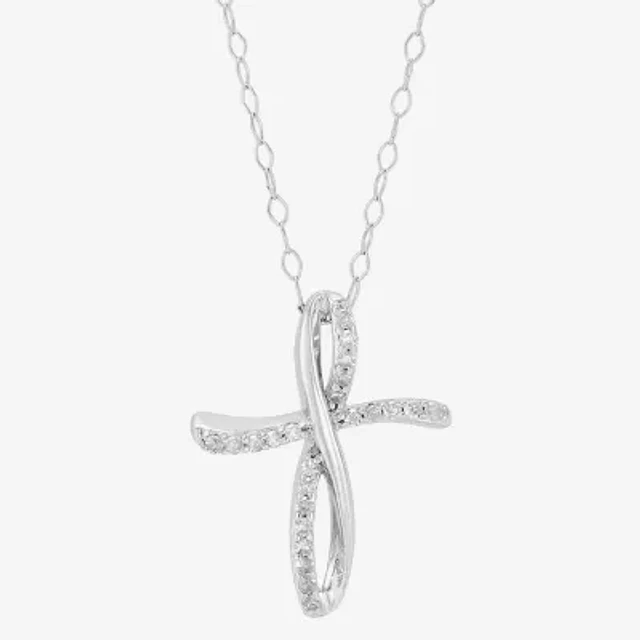 Womens 1/10 CT. T.W. Natural White Diamond Sterling Silver Cross 18 Inch Pendant Necklace