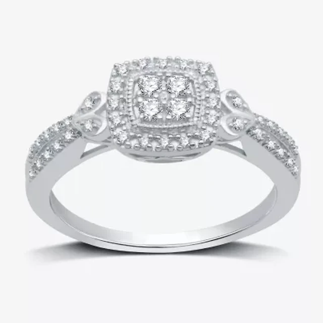 Womens 1/4 CT. T.W. Natural White Diamond Sterling Silver Cushion Side Stone Halo Promise Ring