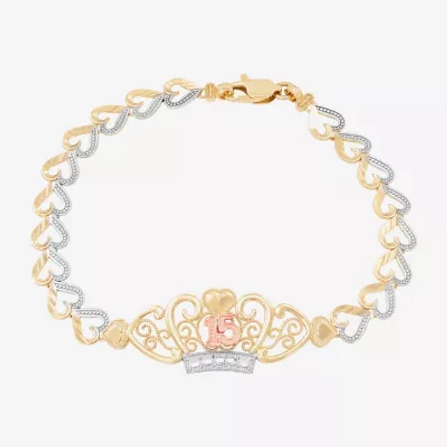 Womens 14K Tri-Color Gold Solid Heart 7.5 Inch Link Bracelet
