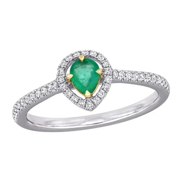 Womens 1/5 CT. Genuine Green Emerald 14K Two Tone Gold Halo Cocktail Ring