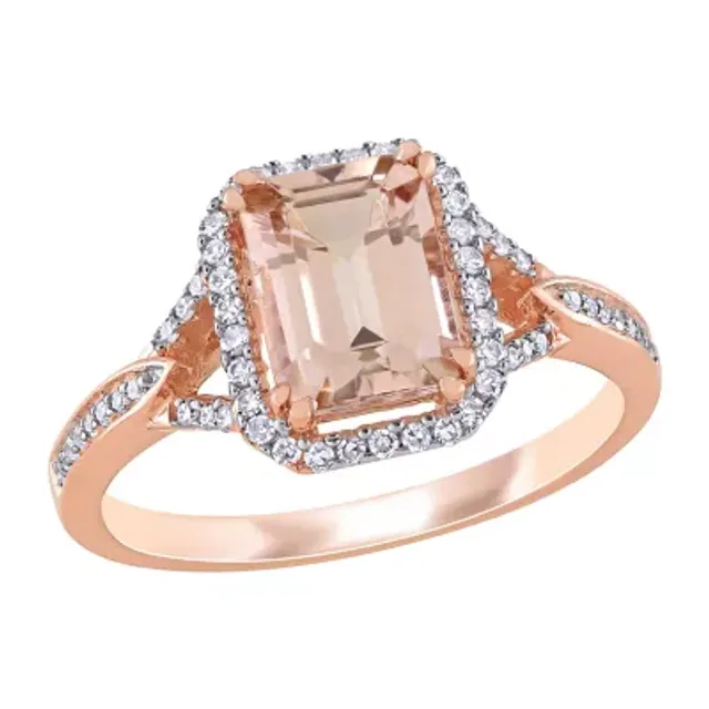 Womens Diamond Accent Genuine Pink Morganite 14K Rose Gold Cocktail Ring
