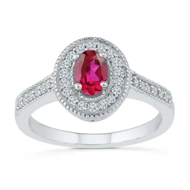 Womens Lab Created Ruby Sterling Silver Cocktail Ring