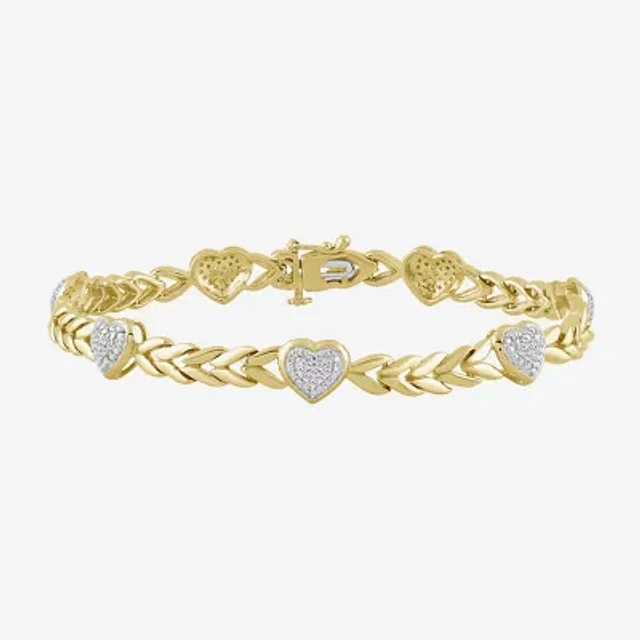 Womens 1/5 CT. Natural White Diamond 10K Gold Over Silver Heart 7 Inch Tennis Bracelet