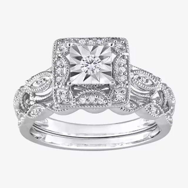 Womens 1/5 CT. Natural White Diamond Sterling Silver Bridal Set
