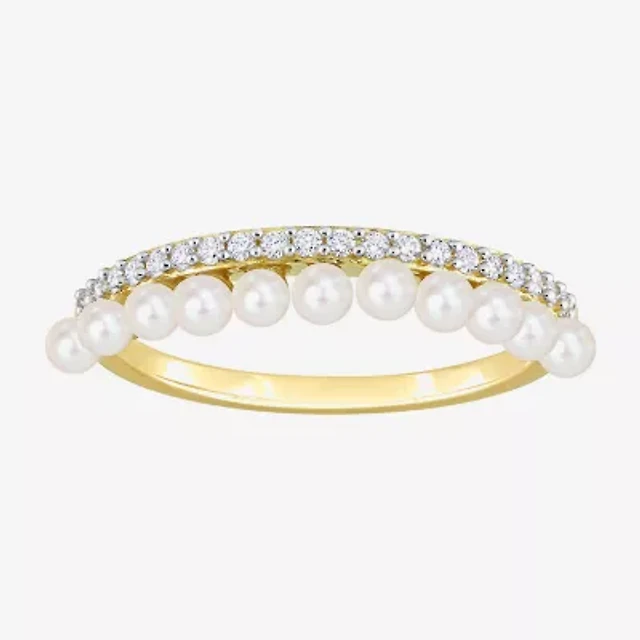 Womens 1/10 CT. T.W. 2MM White Cultured Freshwater Pearl 10K Gold Cocktail Ring