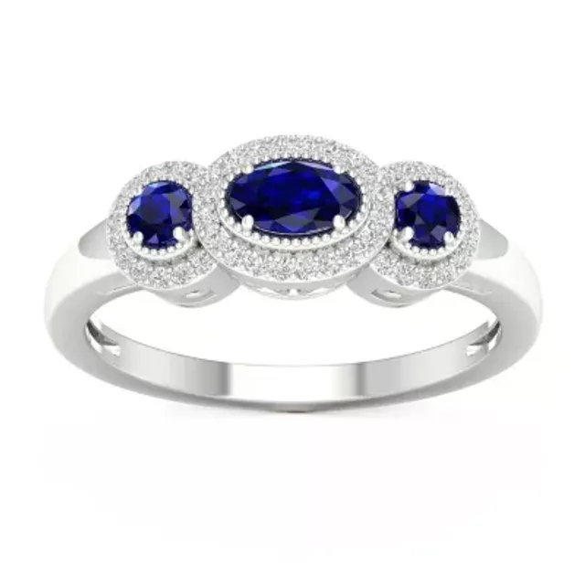 Womens 1/8 CT. T.W. Genuine Blue Sapphire 10K Gold 3-Stone Cocktail Ring