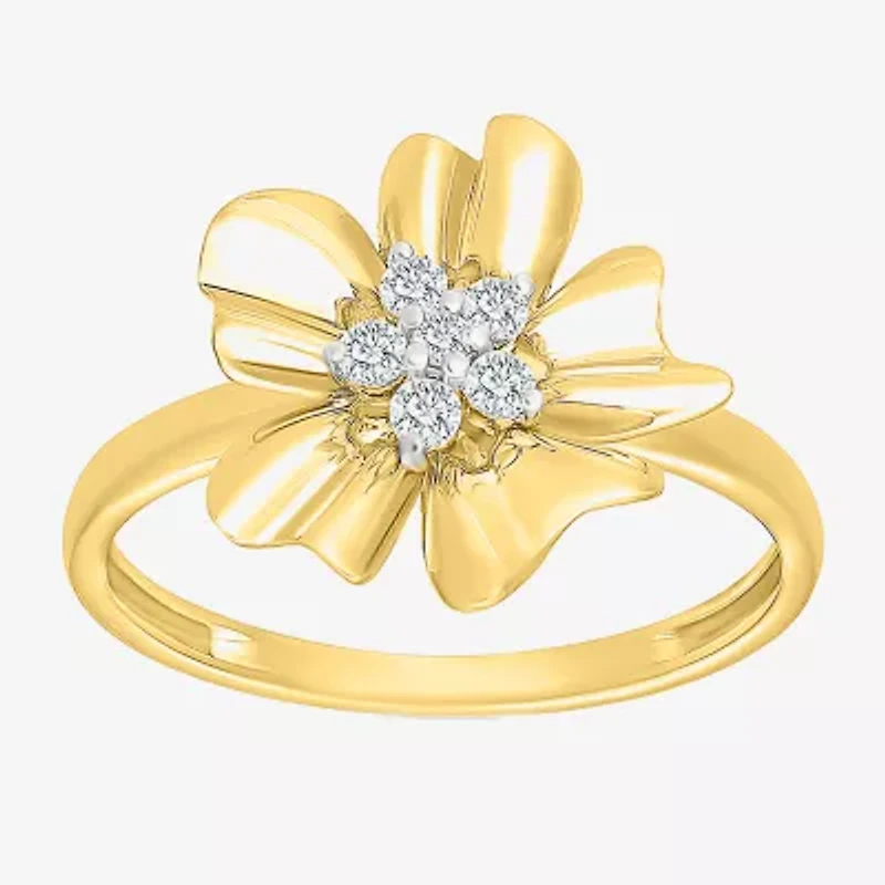 Womens 1/8 CT. T.W. Natural White Diamond 10K Gold Flower Cocktail Ring