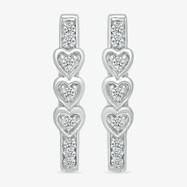 Womens 1/8 CT. T.W. Natural White Diamond Sterling Silver 21.9mm Heart Hoop Earrings