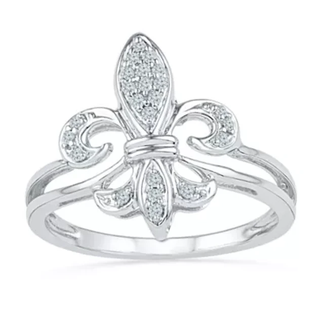 Womens 1/8 CT. T.W. Natural White Diamond Sterling Silver Fleur De Lis Cocktail Ring