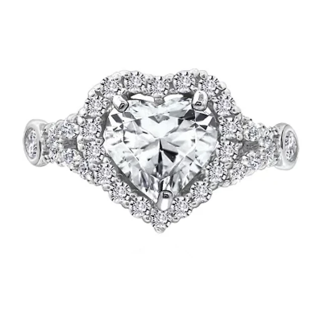 Diamonart Womens 1 7/8 CT. T.W. Cubic Zirconia Sterling Silver Heart Engagement Ring