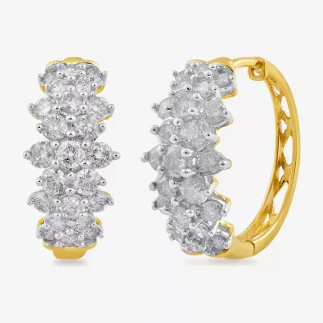Womens 2 CT. T.W. Natural White Diamond 10K Gold 16mm Hoop Earrings