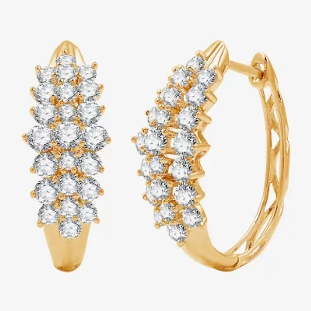 Womens 2 CT. T.W. Lab Grown White Diamond 10K Gold 19.1mm Hoop Earrings