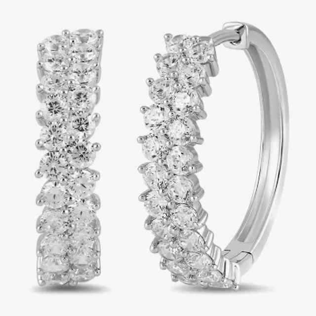 Womens 2 CT. T.W. Lab Grown White Diamond Sterling Silver 20.4mm Hoop Earrings