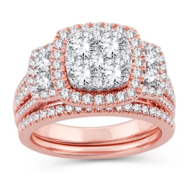 Womens 2 CT. T.W. Natural White Diamond 10K Rose Gold Halo Engagement Ring