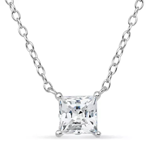 Womens 2 CT. T.W. White Zirconia Sterling Silver Square 18 Inch Pendant Necklace