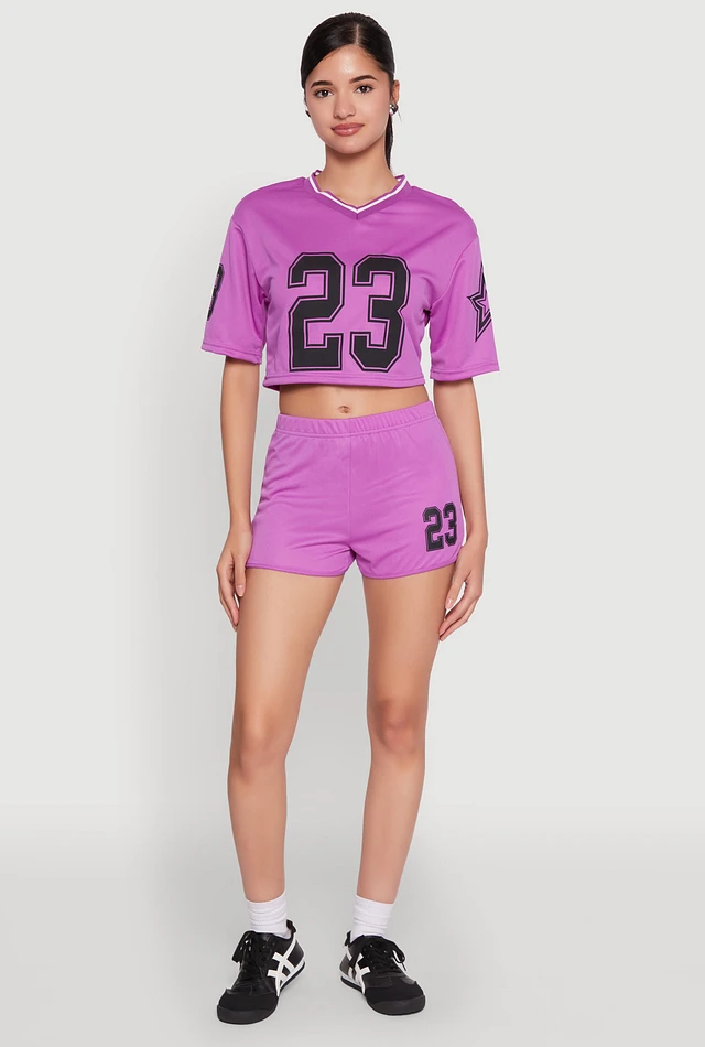 Womens 23 Graphic Jersey Mesh Shorts, Purple, Size S