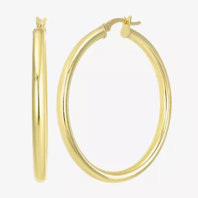 Womens 24K Gold Over Silver 31mm Hoop Earrings