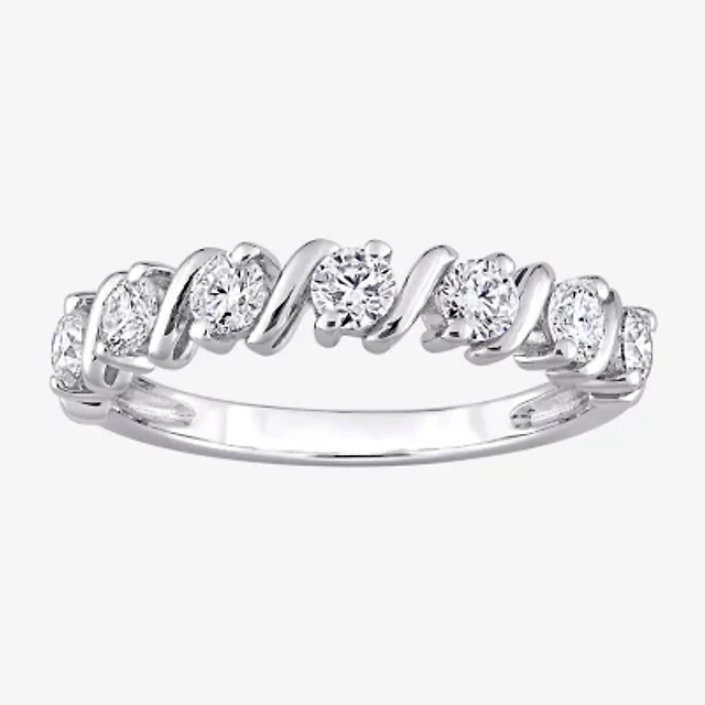 Womens 2MM 3/4 CT. T.W. Lab Created White Moissanite Sterling Silver Wedding Band