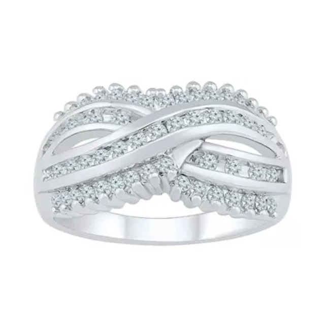 Womens 1/2 CT. T.W. Natural White Diamond Sterling Silver Cluster Crossover Band