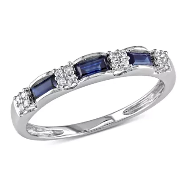 Womens 2MM Diamond Accent Genuine Blue Sapphire 10K White Gold Band