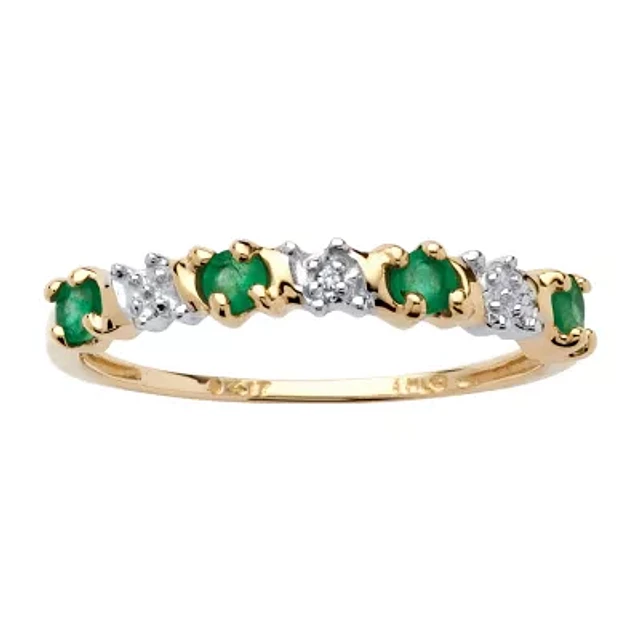 Womens Diamond Accent Lab Created Green Emerald 10K Gold Wedding Band