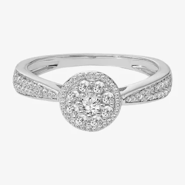 Womens 1/ CT. T.W. Natural White Diamond 10K Gold Round Side Stone Halo Engagement Ring