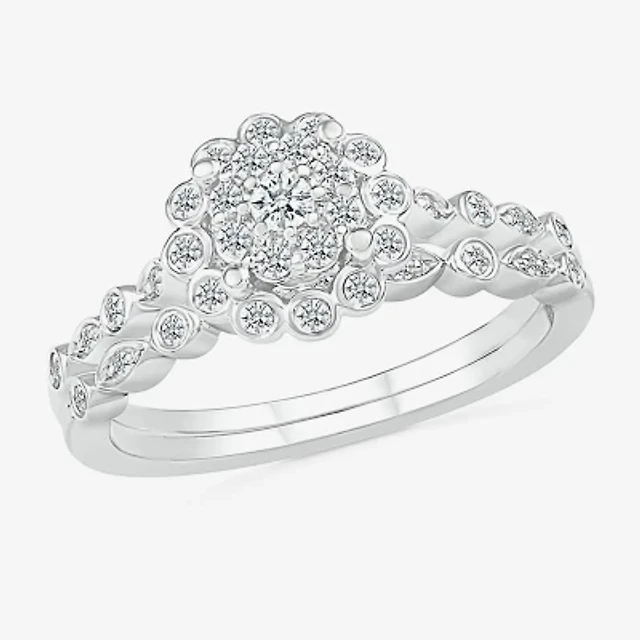 Womens 3/8 CT. T.W. Natural White Diamond 10K Gold Flower Side Stone Halo Bridal Set