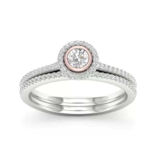 Womens 3/8 CT. T.W. Natural White Diamond 10K Two Tone Gold Round Side Stone Halo Bridal Set