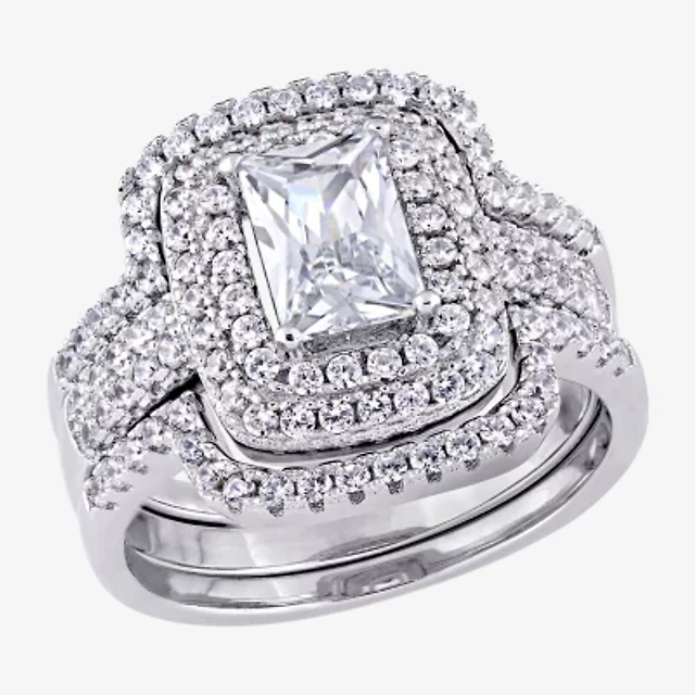 Womens 1 7/8 CT. T.W. Cubic Zirconia Sterling Silver Square Bridal Set