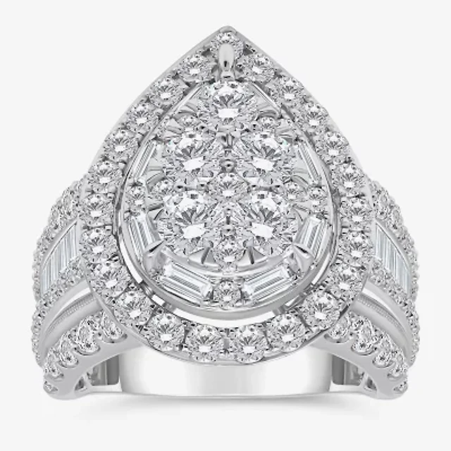 Womens 4 CT. T.W. White Diamond 10K Gold Pear Side Stone Halo Engagement Ring