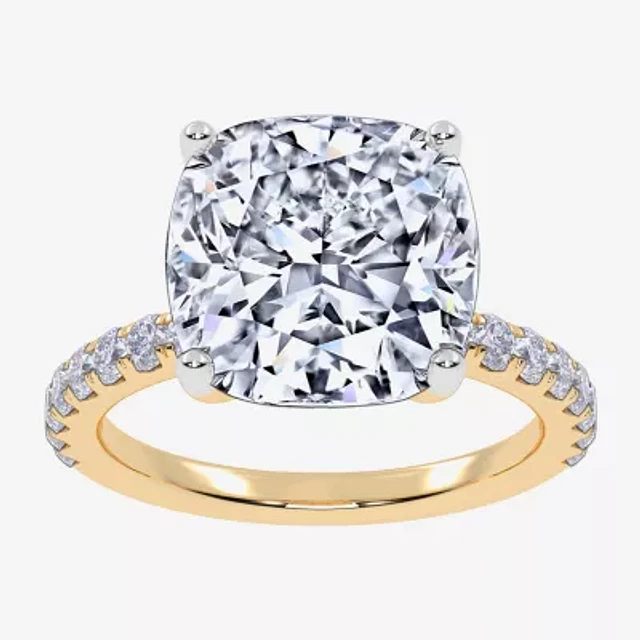 Womens 5 1/2 CT. T.W. Lab Grown White Diamond 14K Gold Cushion Side Stone Engagement Ring