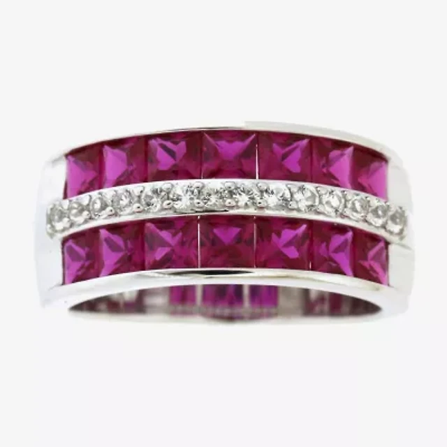 Womens Lab Created Red Ruby Sterling Silver Band