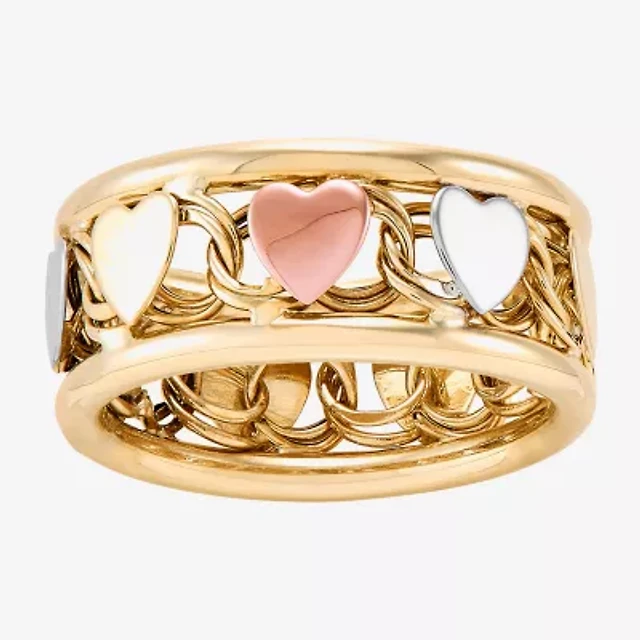 Womens 8.5MM 10K Tri-Color Gold Heart Round Band