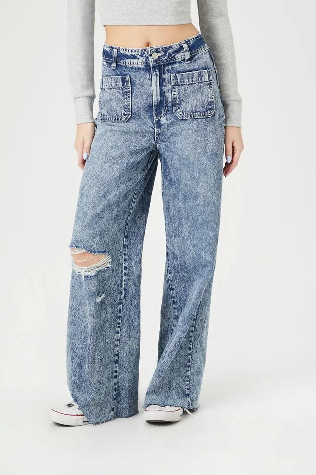 Women's Acid Wash Distressed Baggy Jeans Medium Denim,