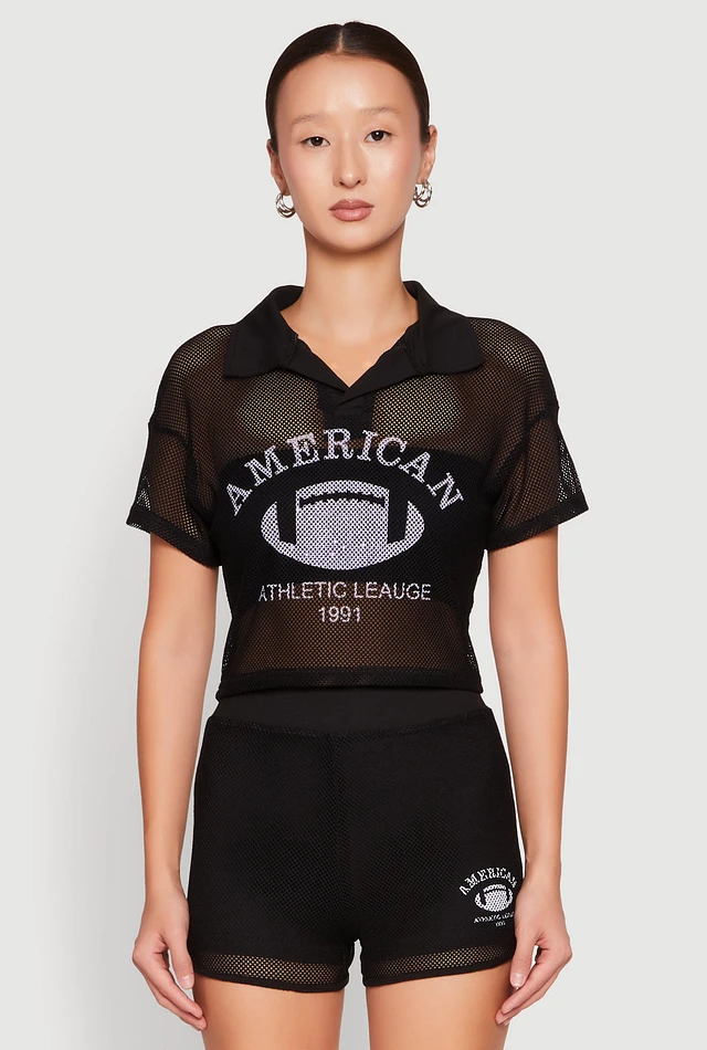 Womens Plus Rhinestone Varsity Stripe Mesh Jersey, 2X