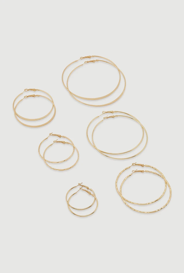 Womens Assorted Metallic Hoop Earrings Set of 6, Gold