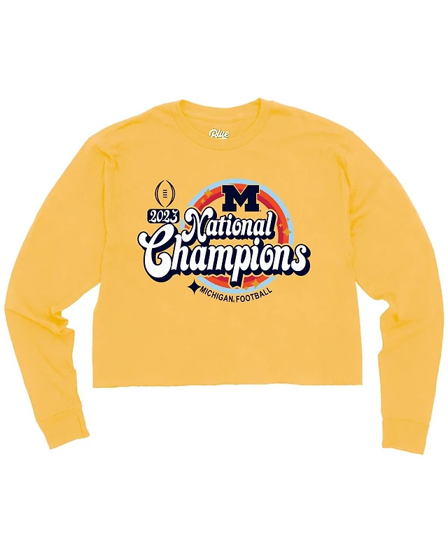 Women's Blue 84 Maize Michigan Wolverines College Football Playoff 2023 National Champions Cropped Long Sleeve T-shirt