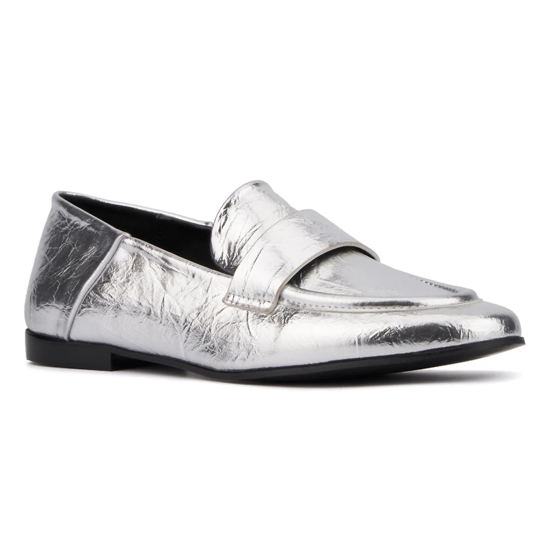 Step into chic luxury with our Carleigh flat, a dazzling expression of modern style. Meticulously crafted, these flats boast a sleek silhouette enhanced by a metallic finish, adding a touch of glamour to your ensemble. Designed with faux leather for durability and comfort, the Carleigh flat effortlessly elevates your look from day to night. Whether for a casual outing or a special occasion, these flats embody sophistication and versatility, making them a perfect choice for any fashion-forward woman.