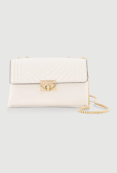 Metallic Chain Quilted Flap Crossbody Handbag