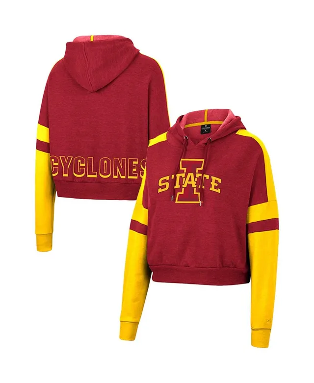 Women's Colosseum Cardinal Iowa State Cyclones Throwback Stripe Arch Logo Cropped Pullover Hoodie