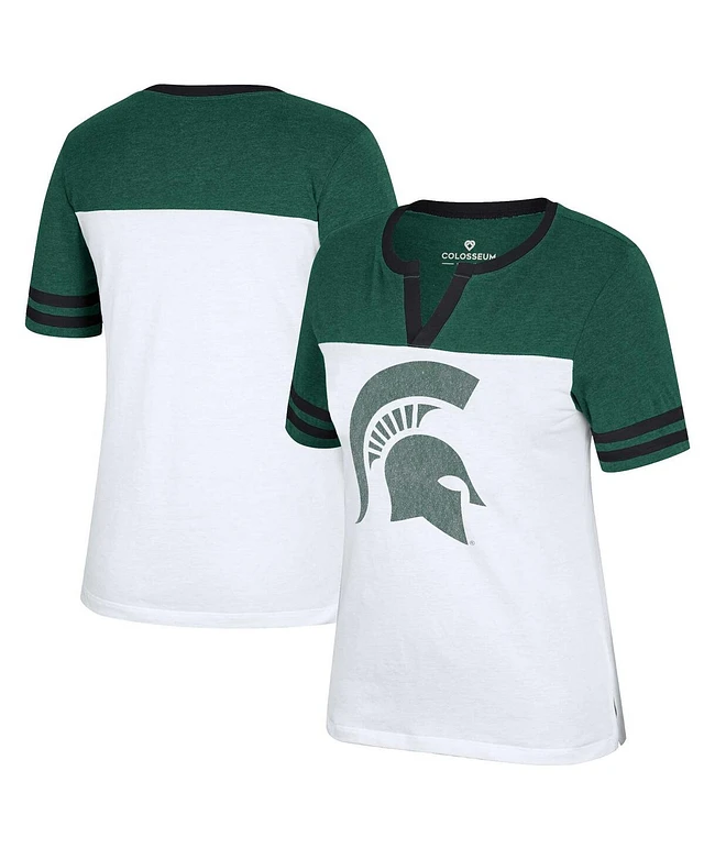 Women's Colosseum White, Heather Green Michigan State Spartans Frost Yourself Notch Neck T-shirt