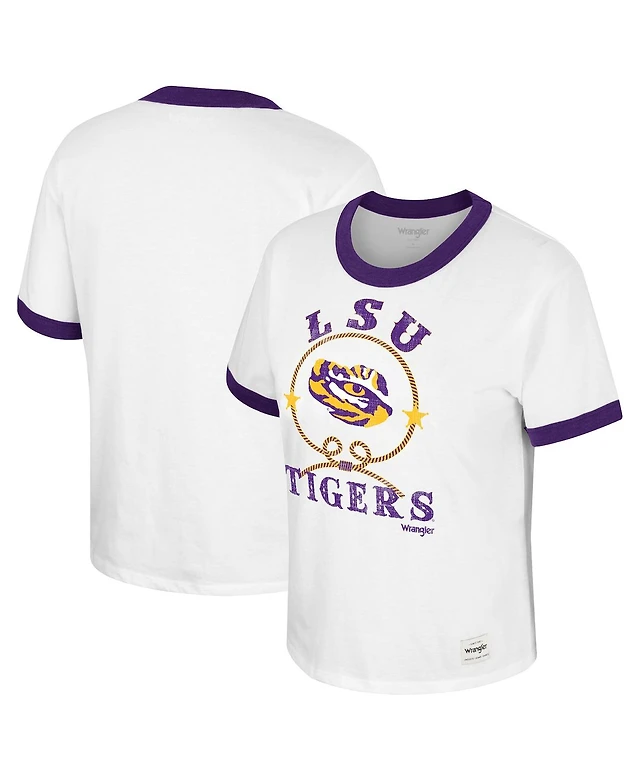 Women's Colosseum x Wrangler White Distressed Lsu Tigers Freehand Ringer T-shirt