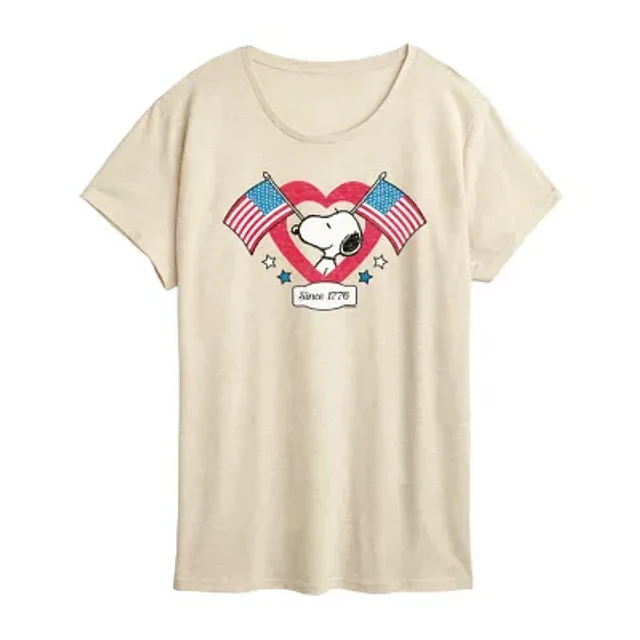 Womens Crew Neck Short Sleeve Regular Fit Peanuts Snoopy Graphic T-Shirt