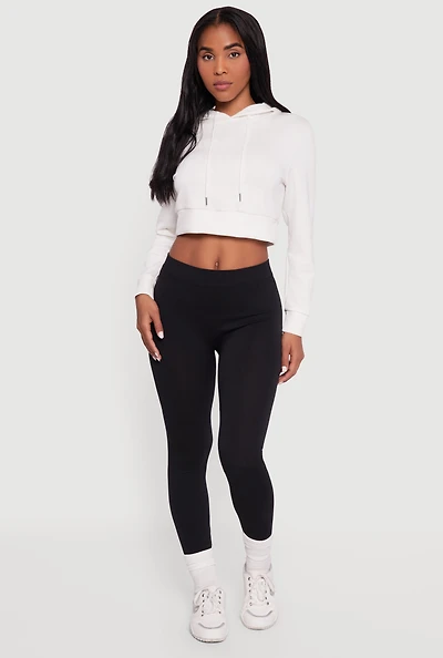 Womens Cropped Long Sleeve Pullover Hoodie, White, Size L