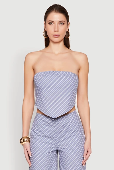 Womens Cropped Stripe Tube Top, Beige, Size S