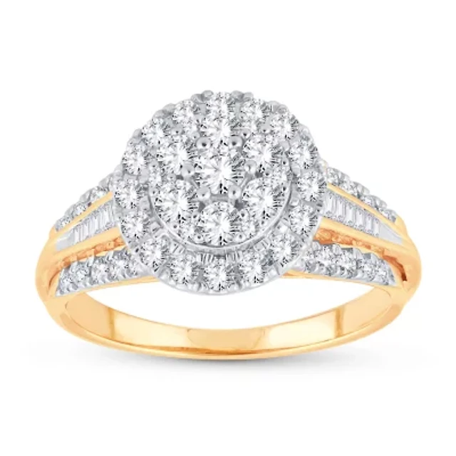 Womens 1 CT. T.W. Natural White Diamond 10K Gold Side Stone Engagement Ring