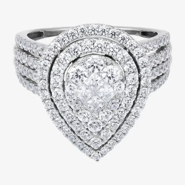 Womens CT. T.W. Natural White Diamond 10K White Gold Pear Engagement Ring
